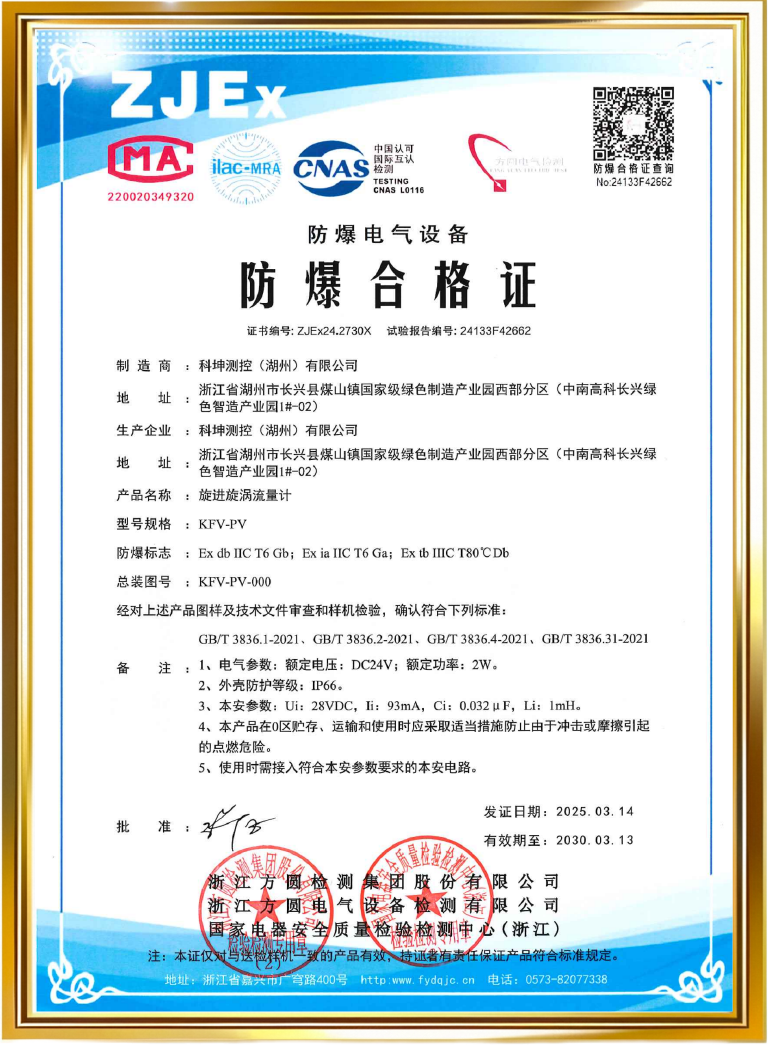 防爆合格證-KFV-PV