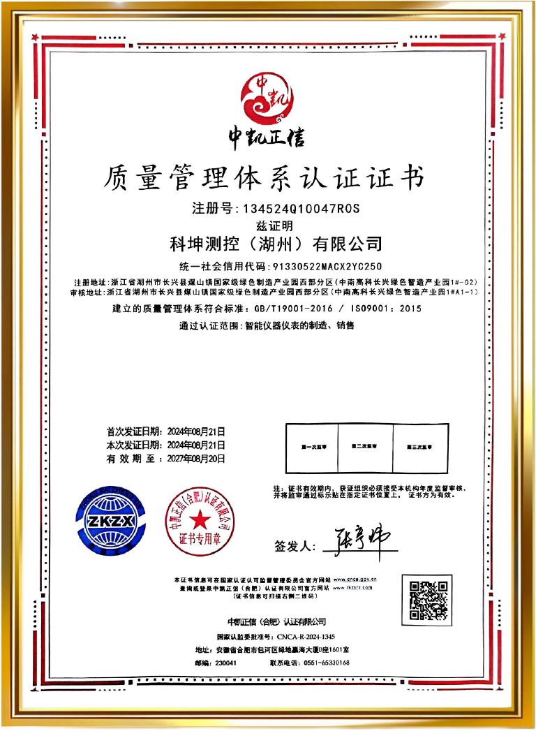 質量管理體系認證證書