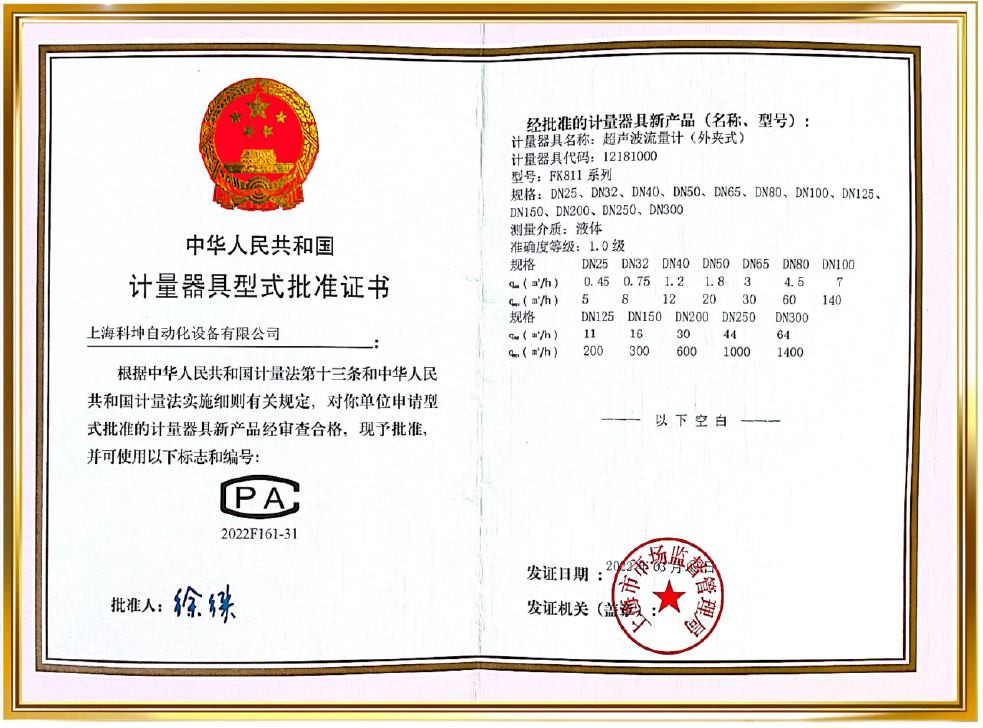 超聲波流量計PA認證